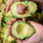 Corte os abacates ao meio, retire o caroço e extraia a polpa com uma colher.